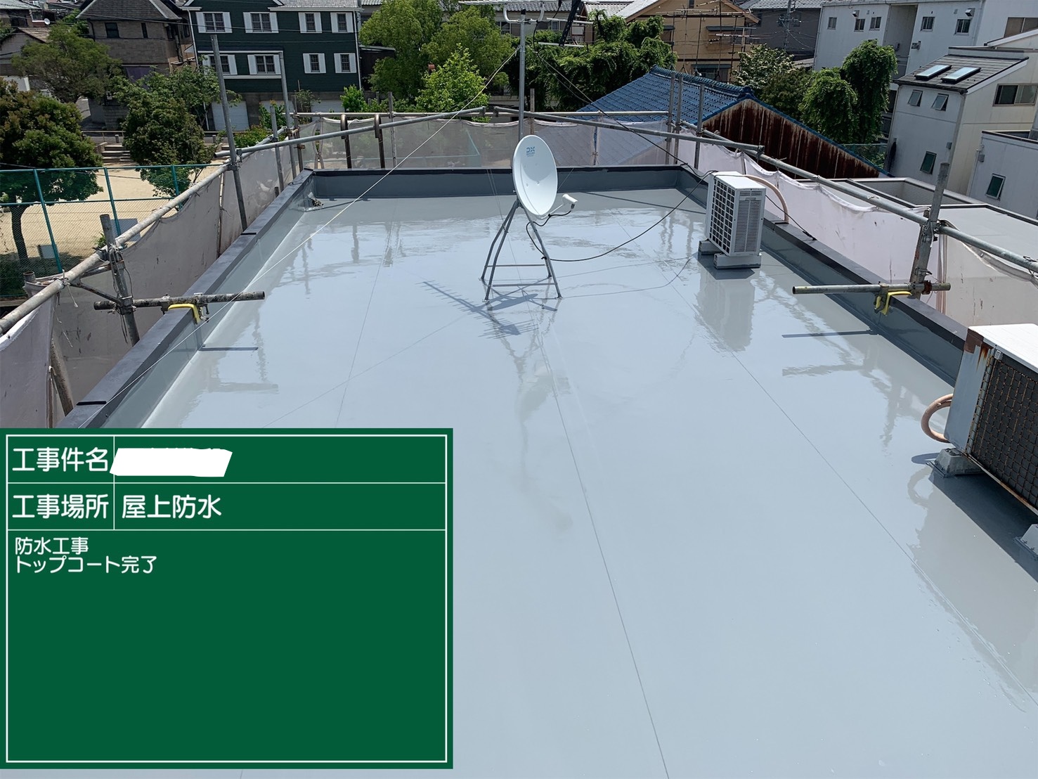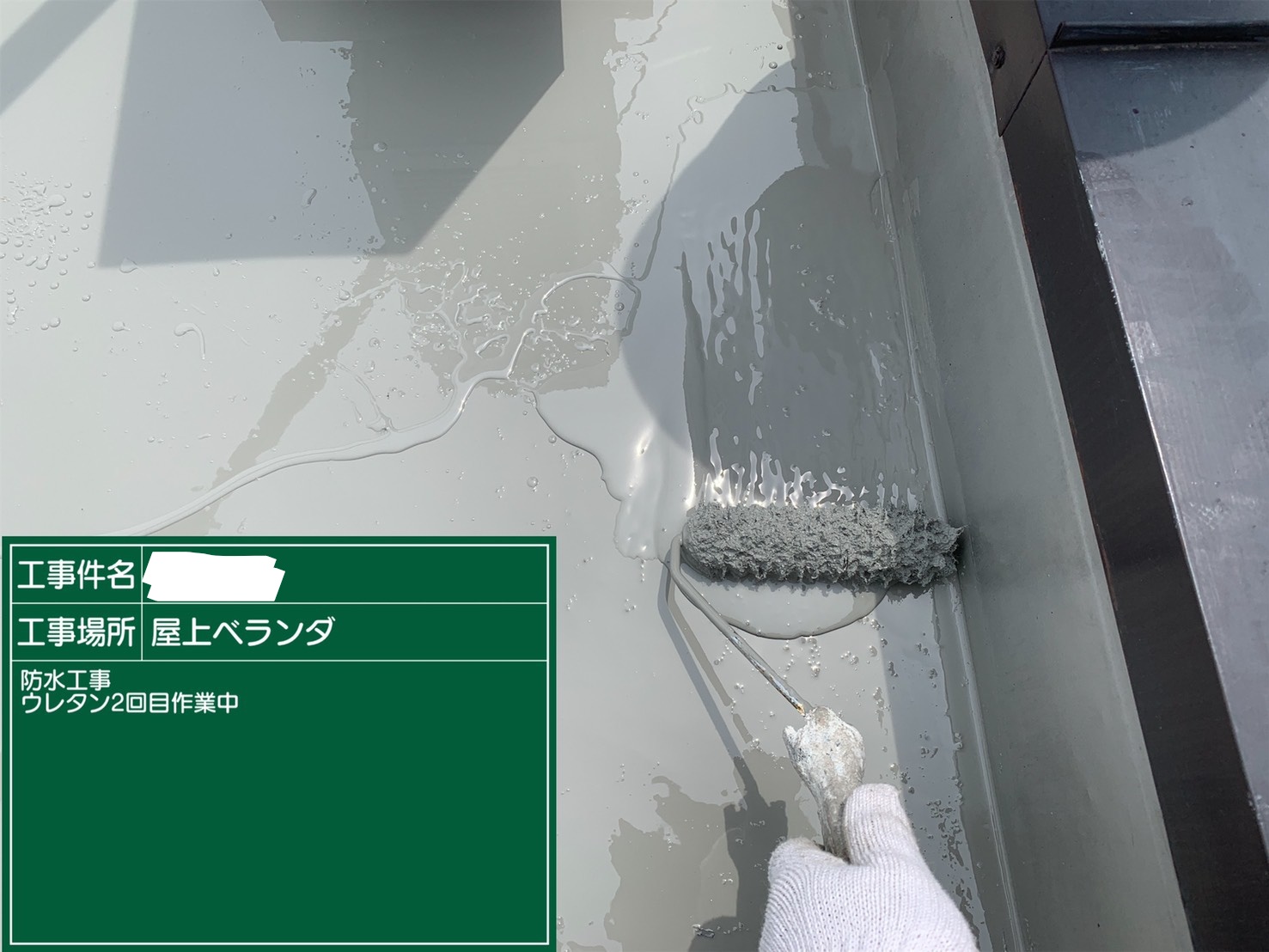 ウレタン防水材は紫外線に弱いため、トップコートという紫外線予防材を塗って保護していきます。