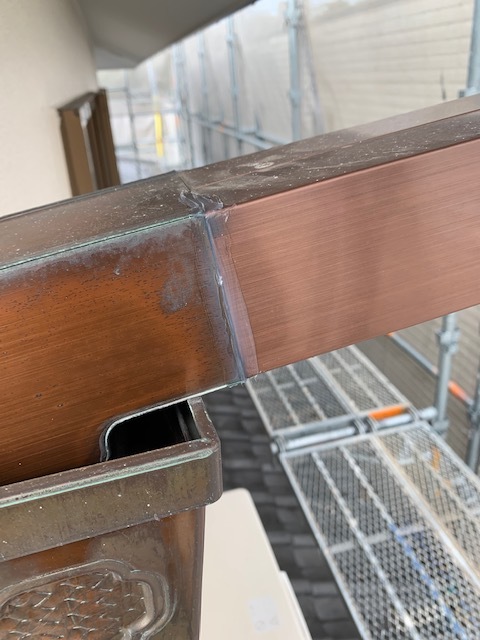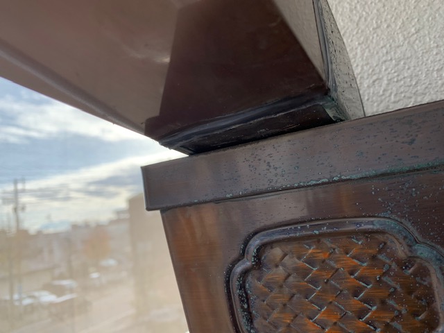 雨樋は、奥様からの要望で雨の日に雨樋の繋ぎ目から雨の雫が落ちて音が気になるということで