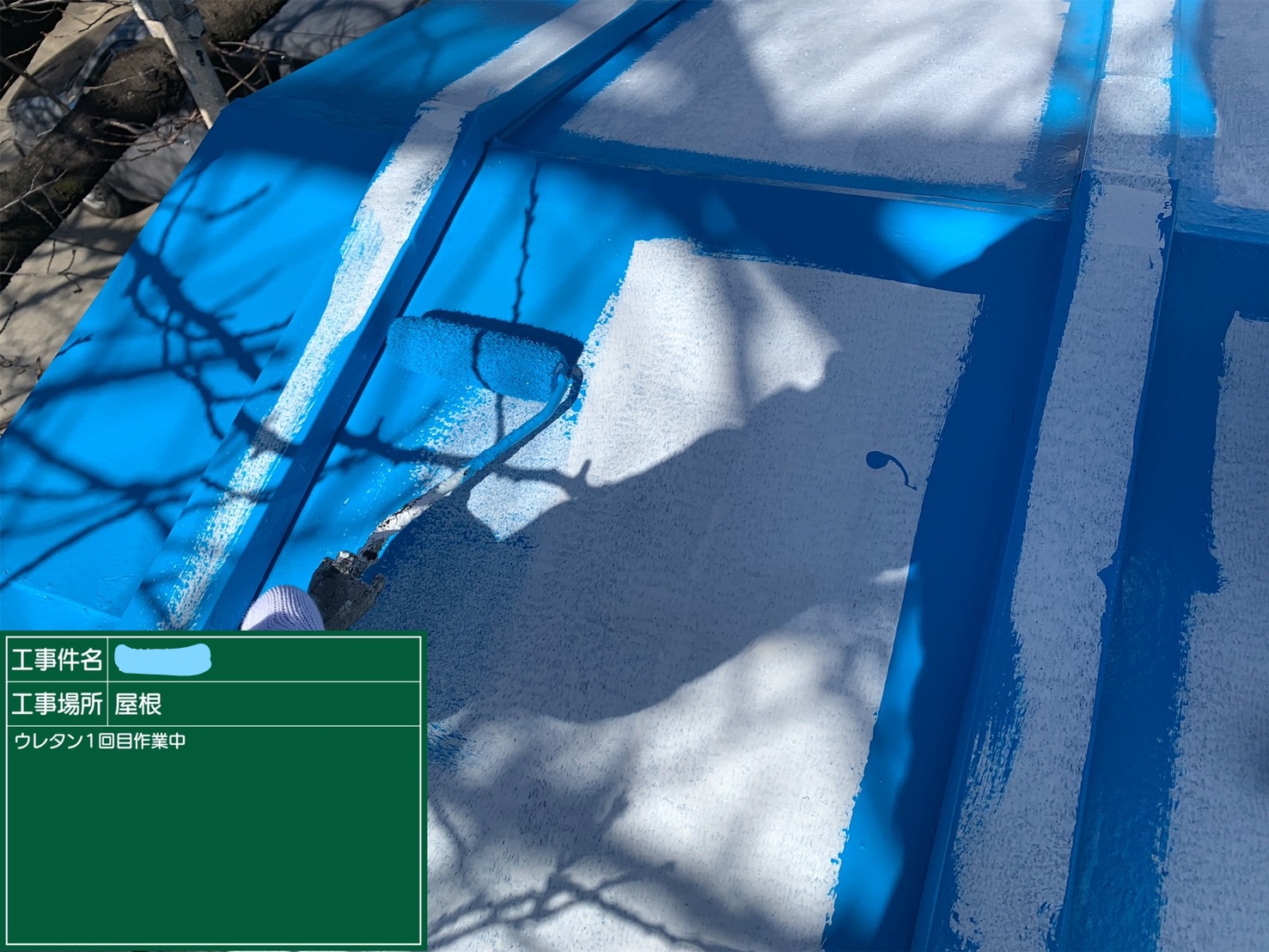 まずは、倉庫の屋根がトタン屋根のため錆止めから塗っていきます。