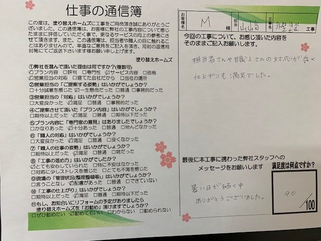 塗装工事は遅れましたがしっかりした仕上がりになり満足していただいたので安心しました。