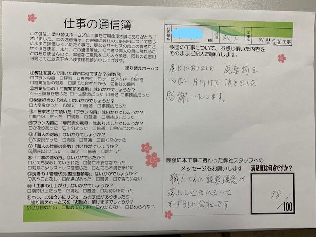 屋上にありました廃棄物を心良く片付けて頂きました感謝いたします。