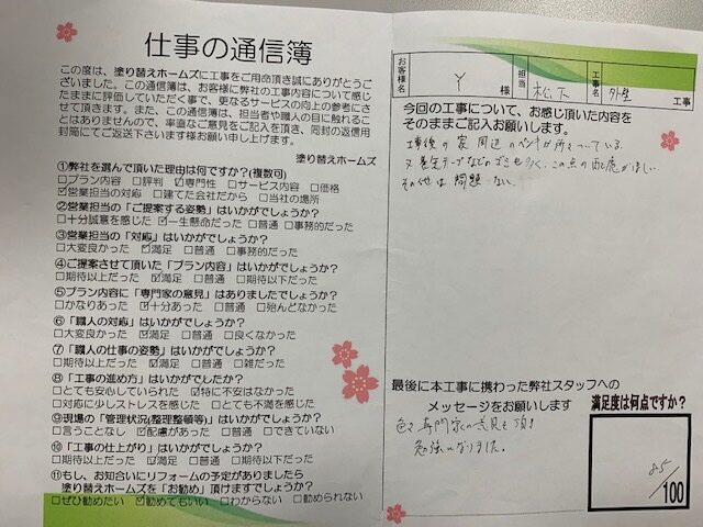 HOME > お客様から頂いた評判の声 > 愛知県名古屋市千種区Y様邸 外壁・屋根・防水工事 塗替えホームズ