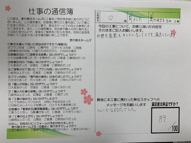 HOME > お客様から頂いた評判の声 > 愛知県小牧市O様邸 外壁塗装・屋根葺き替え工事 外壁塗装は塗替えホームズ